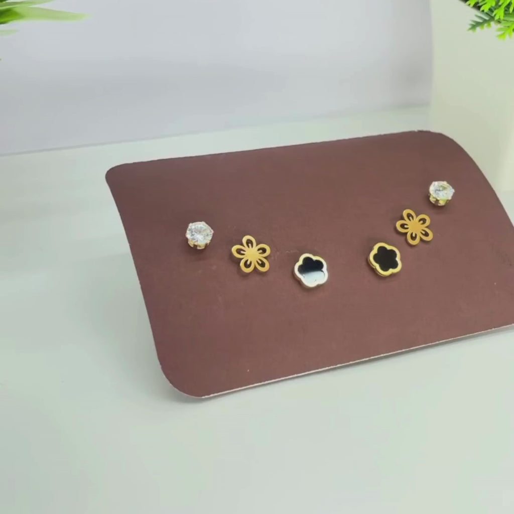 Add charm and versatility to your jewelry collection with this elegant 3-piece earring set for women. The combo includes sparkling crystal stud earrings, delicate open-flower metal studs, and chic black enamel flower studs. Perfect for daily wear, gifting, or mix-and-match styling, this lightweight and stylish set complements both casual and dressy looks. A must-have accessory set for women who love variety and floral-inspired designs.