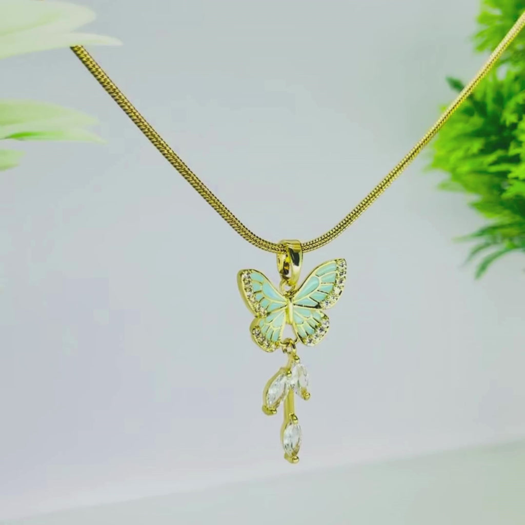Elegant Green Butterfly Pendant Necklace with Crystal Detailing - Gold Plated
