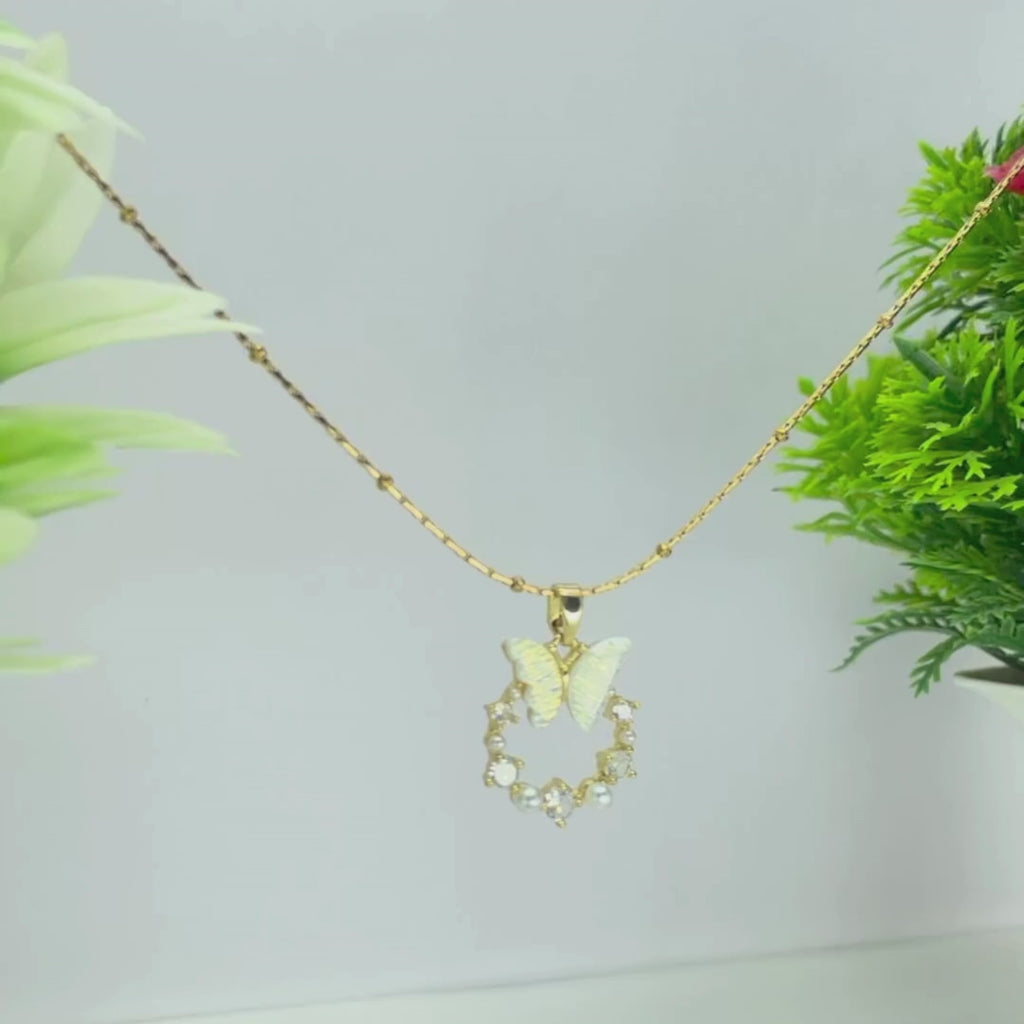 Elevate your style with this stunning opal butterfly pendant necklace, beautifully crafted with iridescent opal wings, shimmering cubic zirconia stones, and elegant pearl accents. The gold-plated design adds a luxurious touch, making it perfect for special occasions or everyday elegance. A unique and feminine accessory that brings sparkle, charm, and sophistication to any outfit.